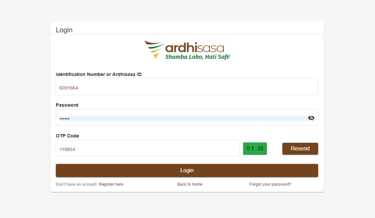 Go to ardhisasa.lands.go.ke and enter your phone number and password. You’ll receive an OTP via SMS — enter it to complete your login. If you don’t receive the OTP, check your promotional messages folder or wait 2 minutes before requesting a new one.