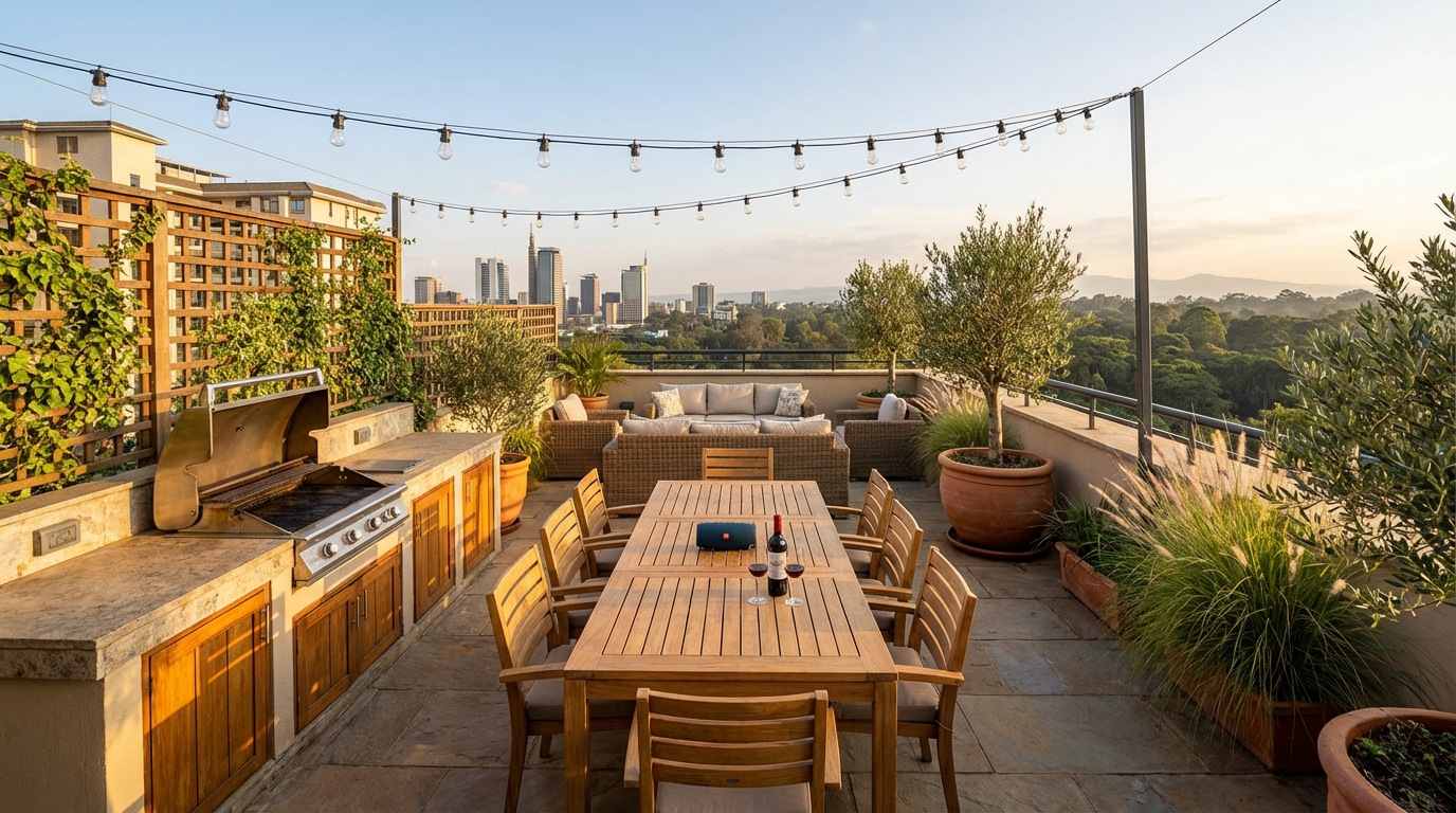 Stunning penthouse apartment on Riverside Drive with unobstructed views of the Nairobi skyline and Karura Forest canopy. Three spacious en-suite bedrooms with floor-to-ceiling windows. Open-plan living area with imported porcelain tile flooring, gas fireplace feature wall, and direct access to a wraparound terrace. Designer kitchen with waterfall marble island, Miele appliances, and wine fridge. Master suite includes a walk-in closet and a bathroom with freestanding soaking tub and double rain shower. Private rooftop terrace with built-in barbecue and entertainment area. The building offers concierge service, heated rooftop pool, state-of-the-art gym, and residents' lounge. Two secure basement parking bays. Walking distance to Westgate Mall and Riverside office parks. Sectional title, ready for immediate transfer.