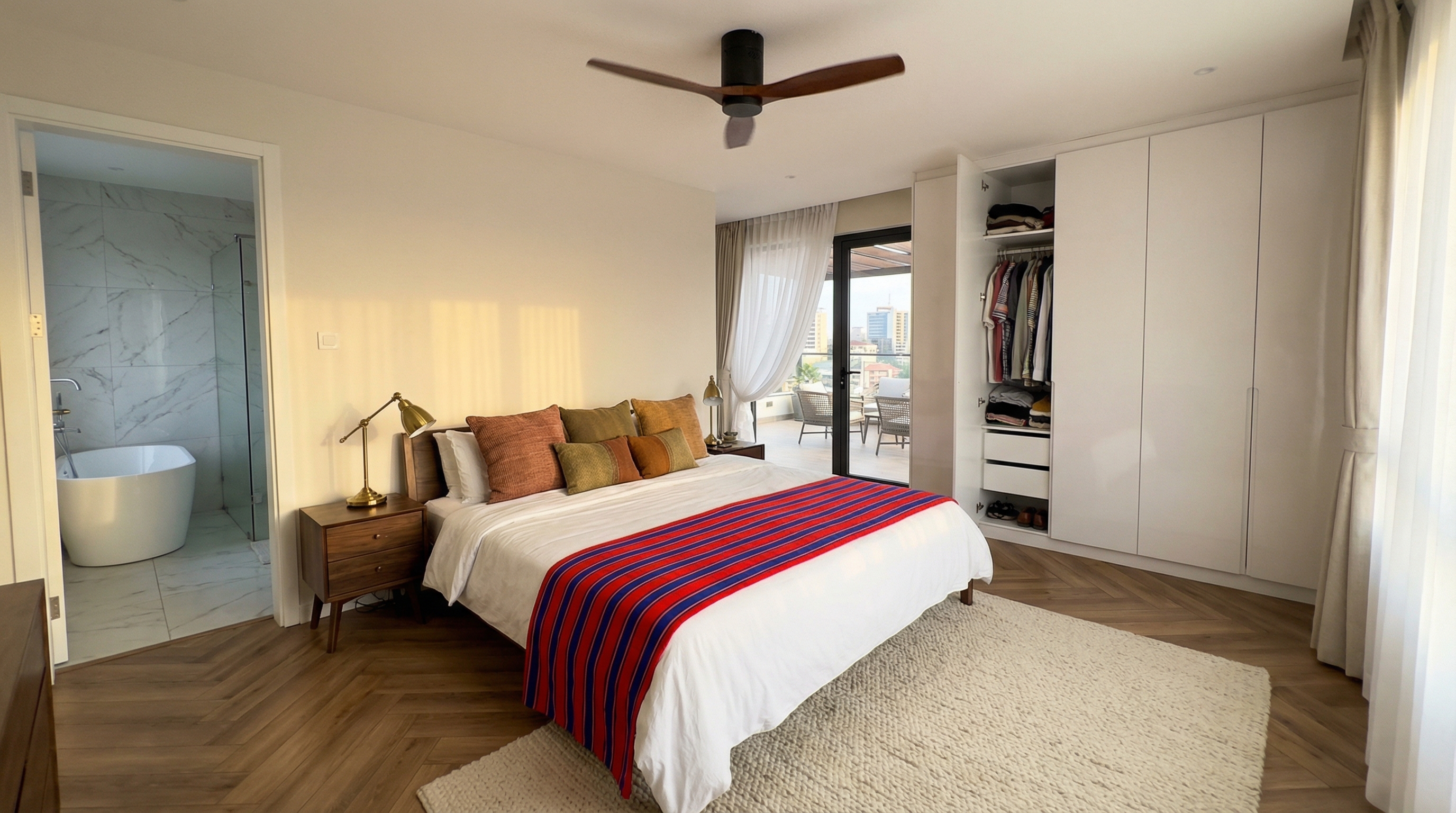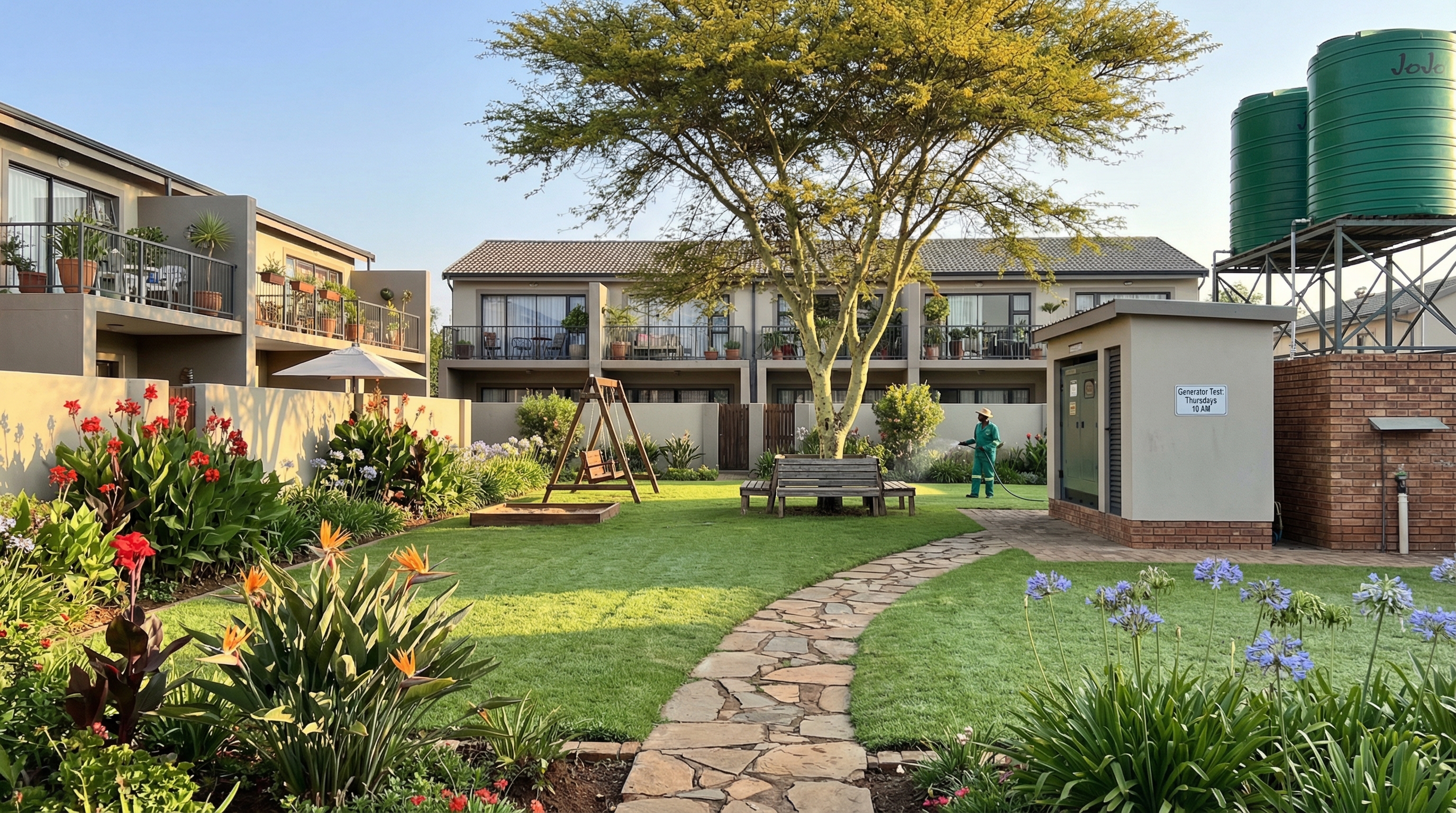 Modern 3-bedroom townhouse in a secure compound of 6 units off Raphta Road in Westlands. Title verification completed — sectional title, no liens, body corporate well-managed with healthy sinking fund. The townhouse has an open-plan ground floor with living, dining, and kitchen flowing to a private courtyard garden. Fitted kitchen with stone worktop and integrated appliances. First floor has master bedroom en-suite and two additional bedrooms sharing a family bathroom. Top floor has a private roof terrace with Westlands skyline views. The compound has electric fence, CCTV, and shared guard. Backup generator and borehole for the compound. Two dedicated parking spaces. Central Westlands location — Sarit Centre, Westgate, ABC Place all within 5 minutes. Ideal for a professional couple or small family wanting urban convenience with townhouse privacy.