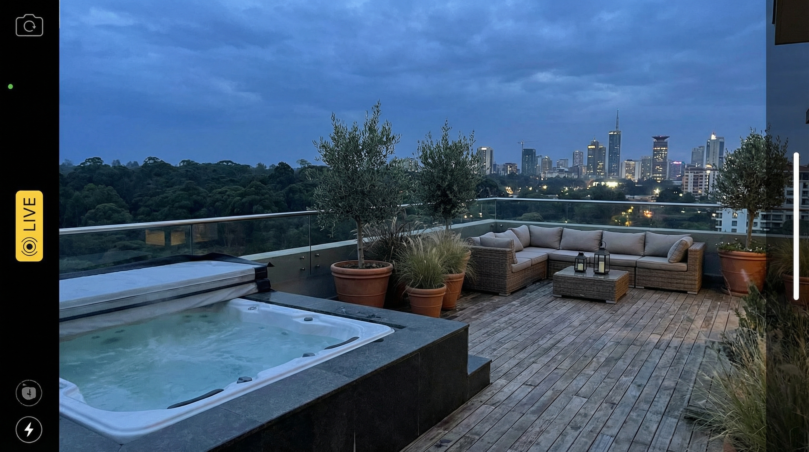 Duplex penthouse crowning a premium Riverside Lane complex. Lower level: grand double-height living room with feature fireplace, formal dining for 8, fully fitted Italian kitchen with Smeg appliances, guest cloakroom, and en-suite guest bedroom. Upper level: master suite with private terrace, walk-in dressing room, dual vanity bathroom with city views, two additional en-suite bedrooms, and family lounge. Separate DSQ on ground floor. Private rooftop garden with jacuzzi and 360-degree views — Karura Forest north, Nairobi skyline south. Three basement parking bays. Complex has infinity pool, gym, sauna. Selling fully furnished including custom Italian furniture. Title deed ready.