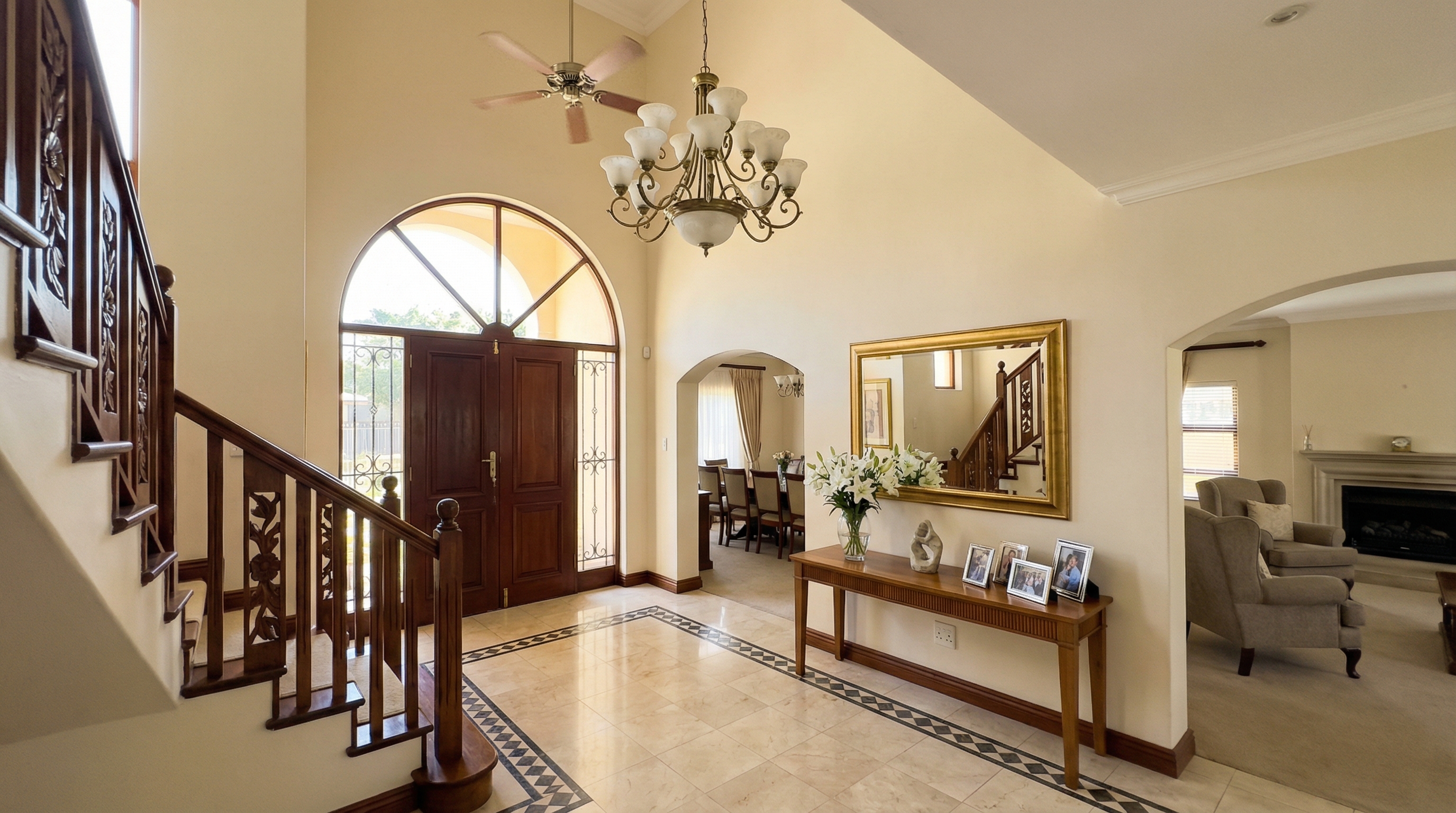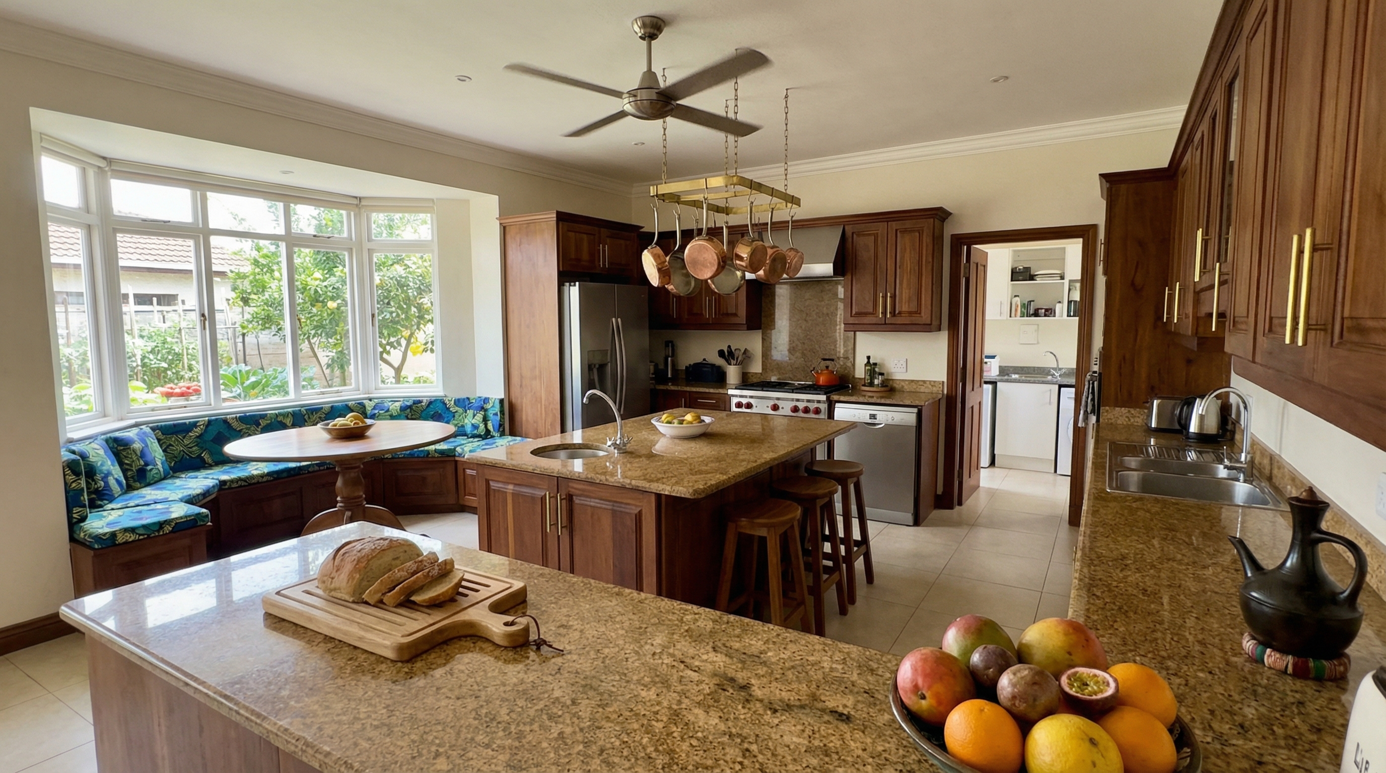 Substantial 5-bedroom family villa on a third-acre plot along Fifth Parklands Avenue. Complete legal package prepared: freehold title verified at the lands registry, historical search clean for 40 years, survey plan confirmed against beacon positions, all rates and rents cleared. The home has a grand entrance hall, formal lounge with gas fireplace, separate family TV room, and dining room. Updated kitchen with stone counters and modern fittings. Ground floor guest bedroom en-suite. First floor: master suite with dressing area and en-suite with bathtub and separate shower. Three additional bedrooms, two en-suite. Mature walled garden with lawn, fruit trees, and a covered entertainment area with barbecue. Self-contained staff quarters. Three-car garage. Electric fence, alarm, and CCTV. Borehole and 10,000L water storage. Parklands is one of Nairobi's most connected neighborhoods — hospitals, schools, malls, and the CBD all within 10 minutes.
