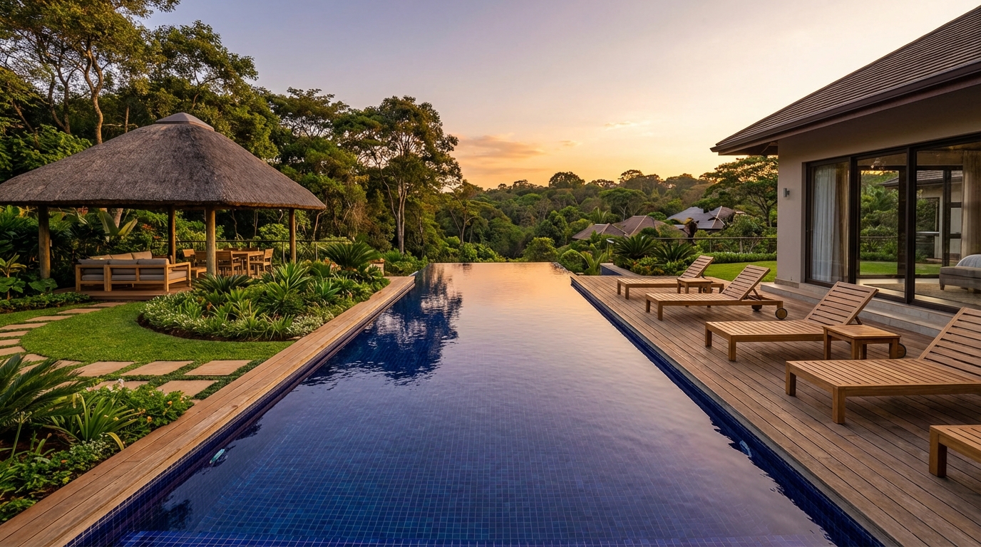 Architectural masterpiece on a 1-acre plot in the heart of Runda Estate. Six en-suite bedrooms including a ground-floor guest wing and a separate master pavilion with private lounge, dressing room, and spa-style bathroom. Grand reception hall with double-height ceiling and imported chandelier. Formal dining room seating 12. Chef's kitchen with two islands, wine cooler, and commercial-grade extraction. Home cinema room with acoustic paneling. Private gym. Heated 20-metre lap pool with infinity edge overlooking the forested valley. Tennis court. Landscaped gardens designed by a South African landscape architect. Four-car garage with staff quarters above. Full solar array, 20,000-litre water storage, commercial borehole, and standby generator. Boundary walls with electric fence and 24-hour guard house. This is one of Runda's finest estates. Freehold title, encumbrance free.